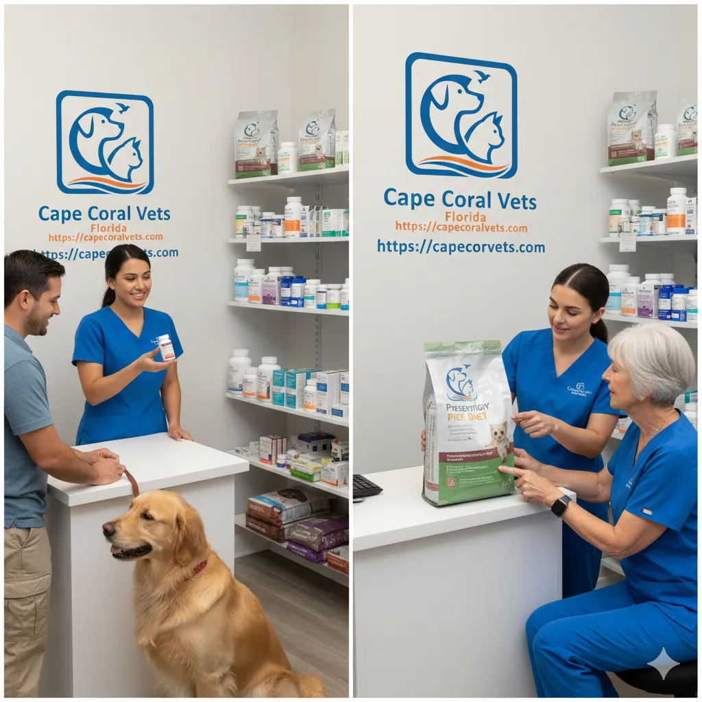 At Cape Coral Vets Florida, we understand that your pet’s health and well-being are your top priorities. That’s why we offer a comprehensive pharmacy and prescription diet service tailored to meet the unique needs of your furry family members. Our dedicated team of veterinary professionals is here to ensure that your pet receives the best possible care through our carefully curated medications and dietary solutions.